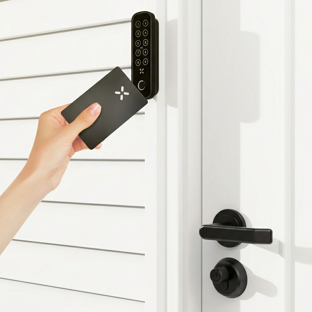 The BLACK X NFC Card Set expands your xPad+ access system with secure tap-to-unlock functionality. Designed for seamless integration, these encrypted NFC cards provide convenient physical access for additional users without requiring a smartphone, offering a practical solution for everyday entry control.