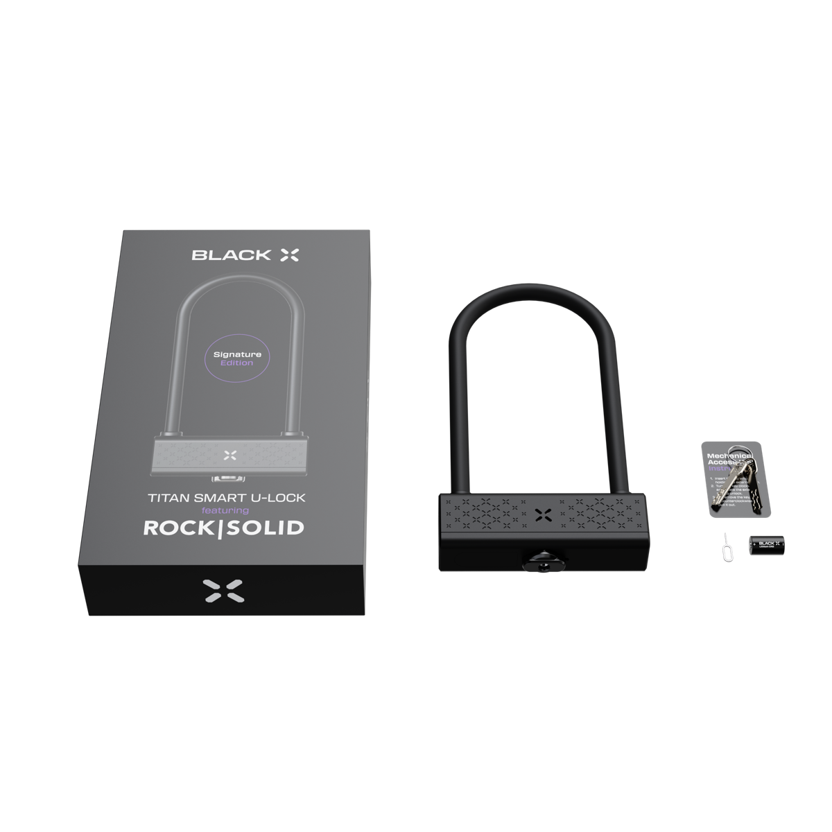 Engineered for riders requiring elevated protection, the BLACK X Titan Smart RockSolid U-Lock integrates RockSolid angle grinder resistant coating with secure smart access. Operated through the BLACK X app or optional xKey, it delivers reinforced physical defense alongside controlled digital unlocking.