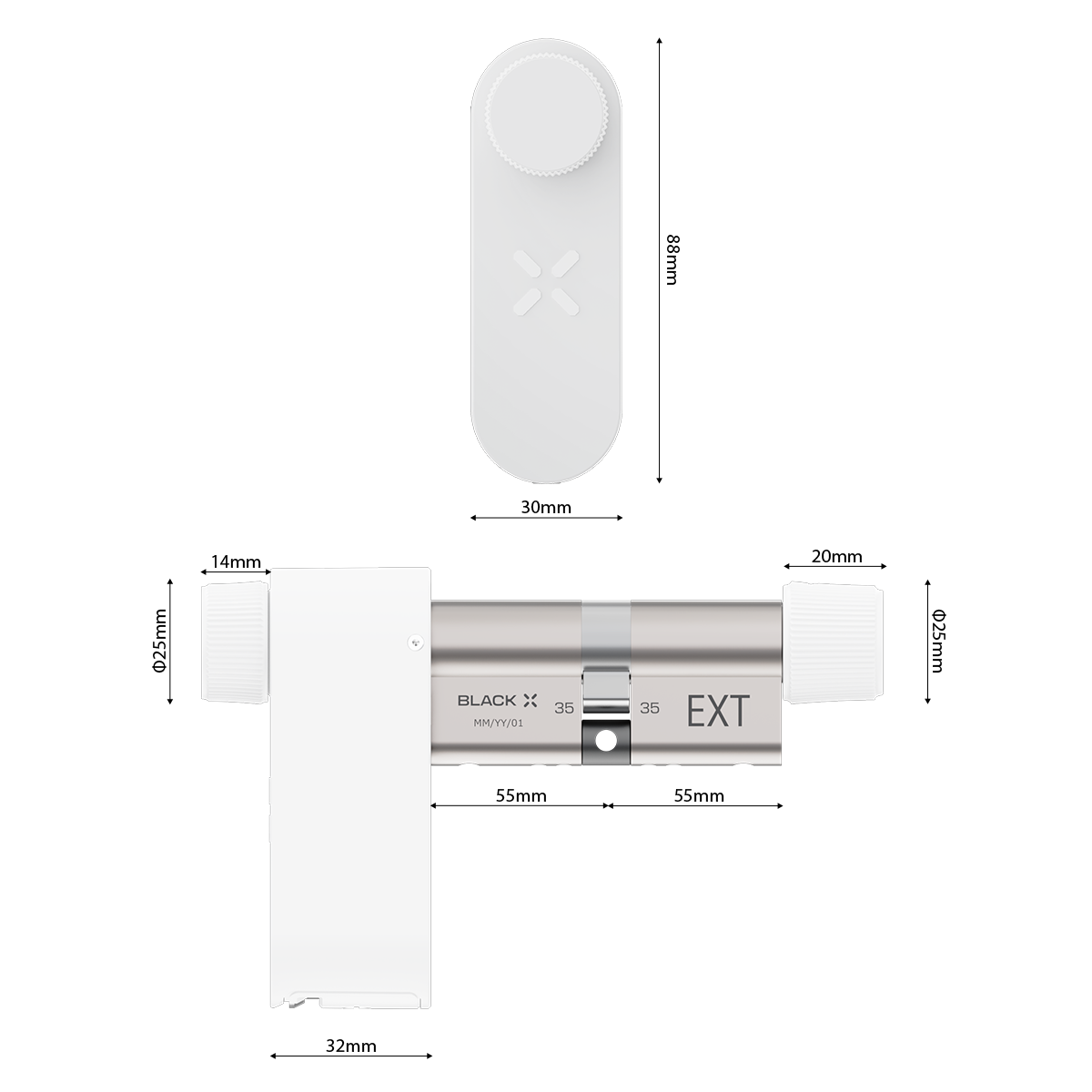 Developed as a modular alternative to standard Euro profile cylinders, this smart lock adjusts to multiple door size ranges for a precise fit. Operated using the BLACK X App on iOS or Android, it allows controlled digital access and compatibility with supported BLACK X accessories.