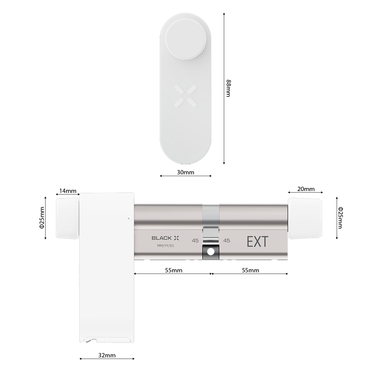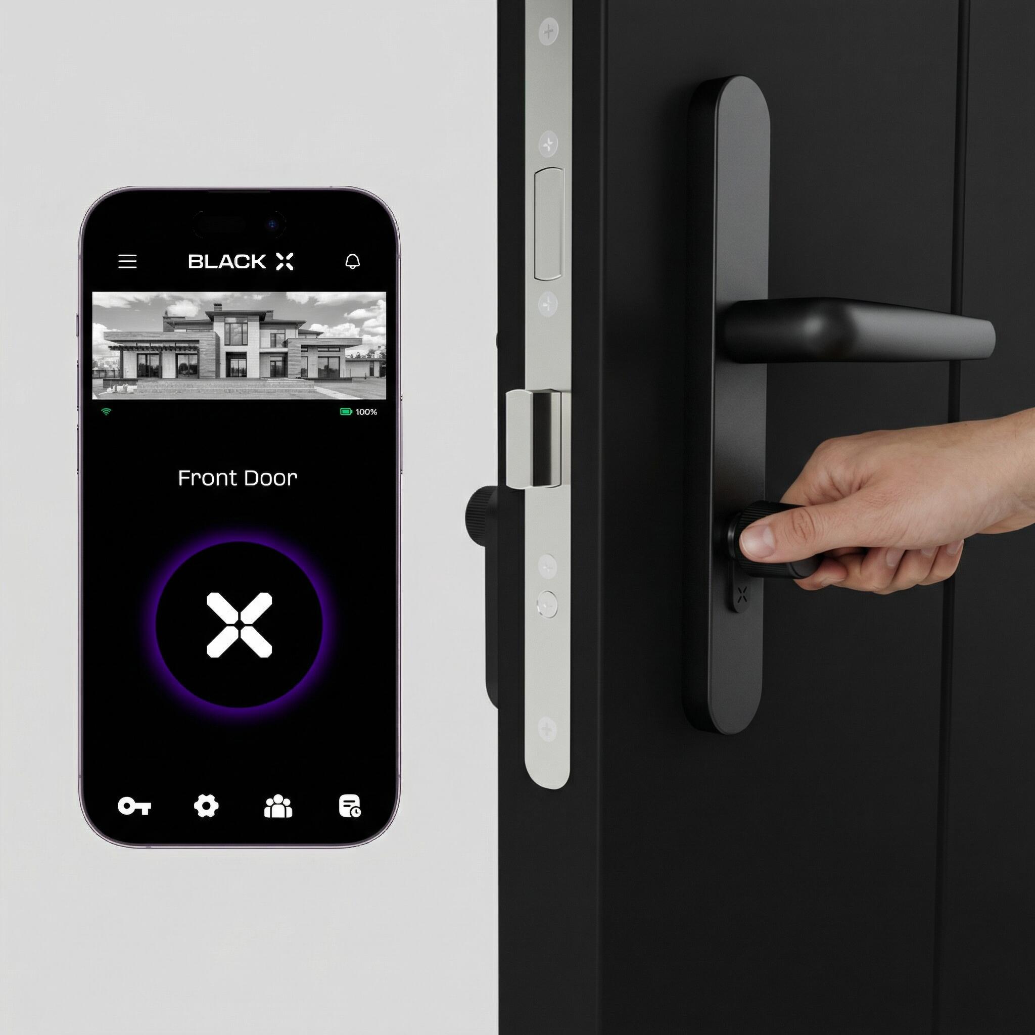Developed as a modular alternative to standard Euro profile cylinders, this smart lock adjusts to multiple door size ranges for a precise fit. Operated using the BLACK X App on iOS or Android, it allows controlled digital access and compatibility with supported BLACK X accessories.