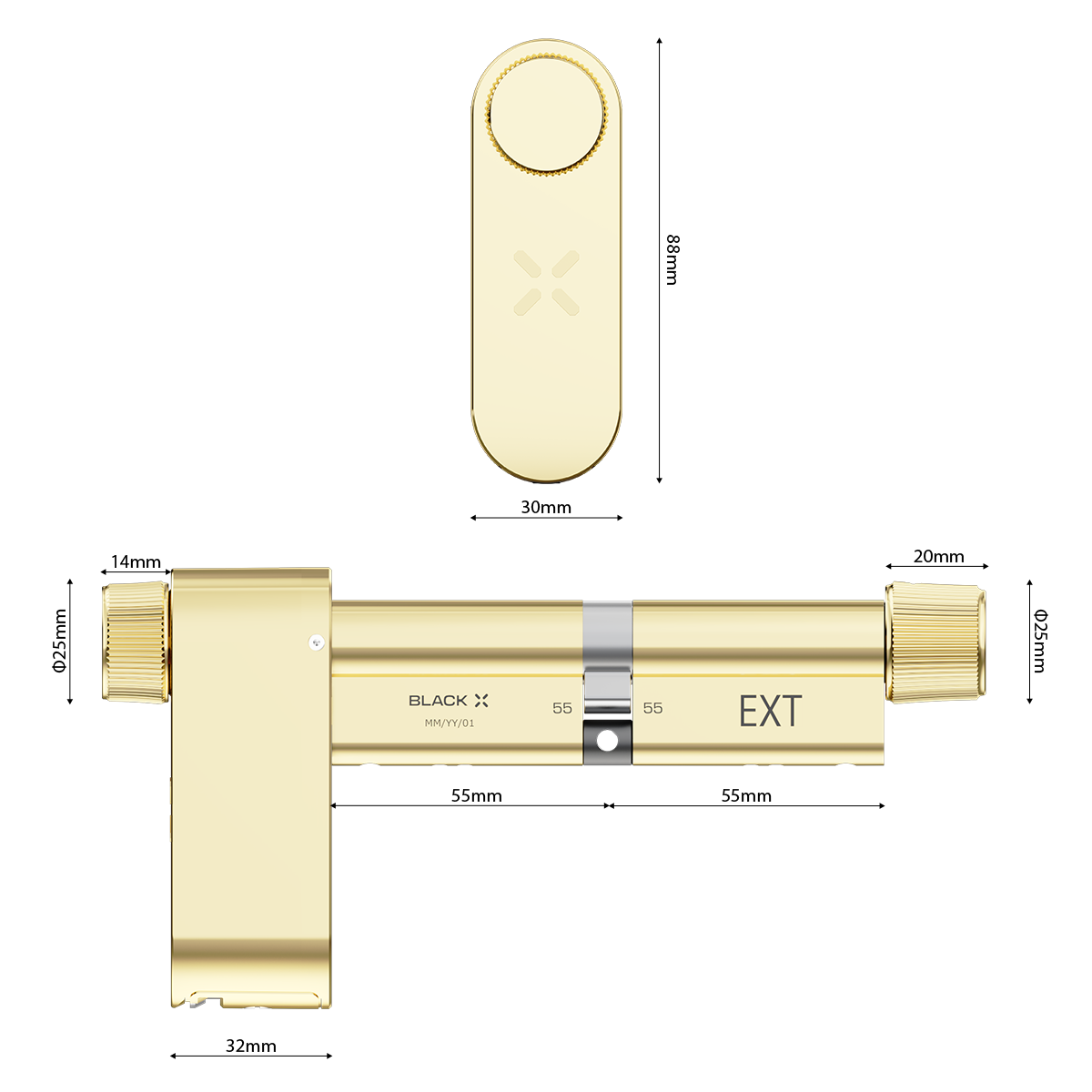 Developed as a modular alternative to standard Euro profile cylinders, this smart lock adjusts to multiple door size ranges for a precise fit. Operated using the BLACK X App on iOS or Android, it allows controlled digital access and compatibility with supported BLACK X accessories.