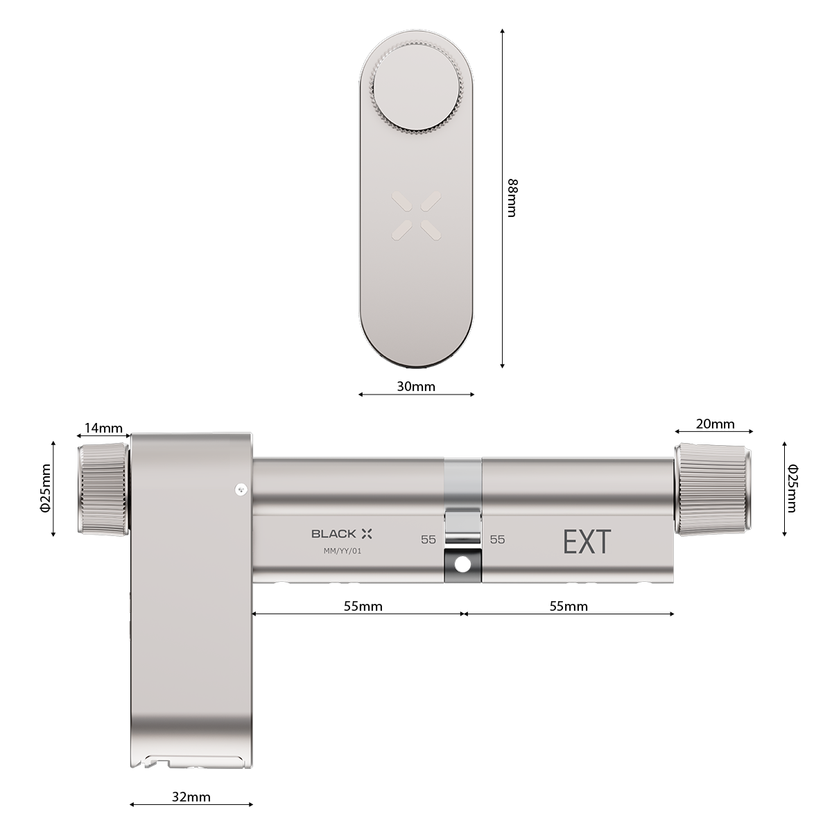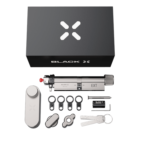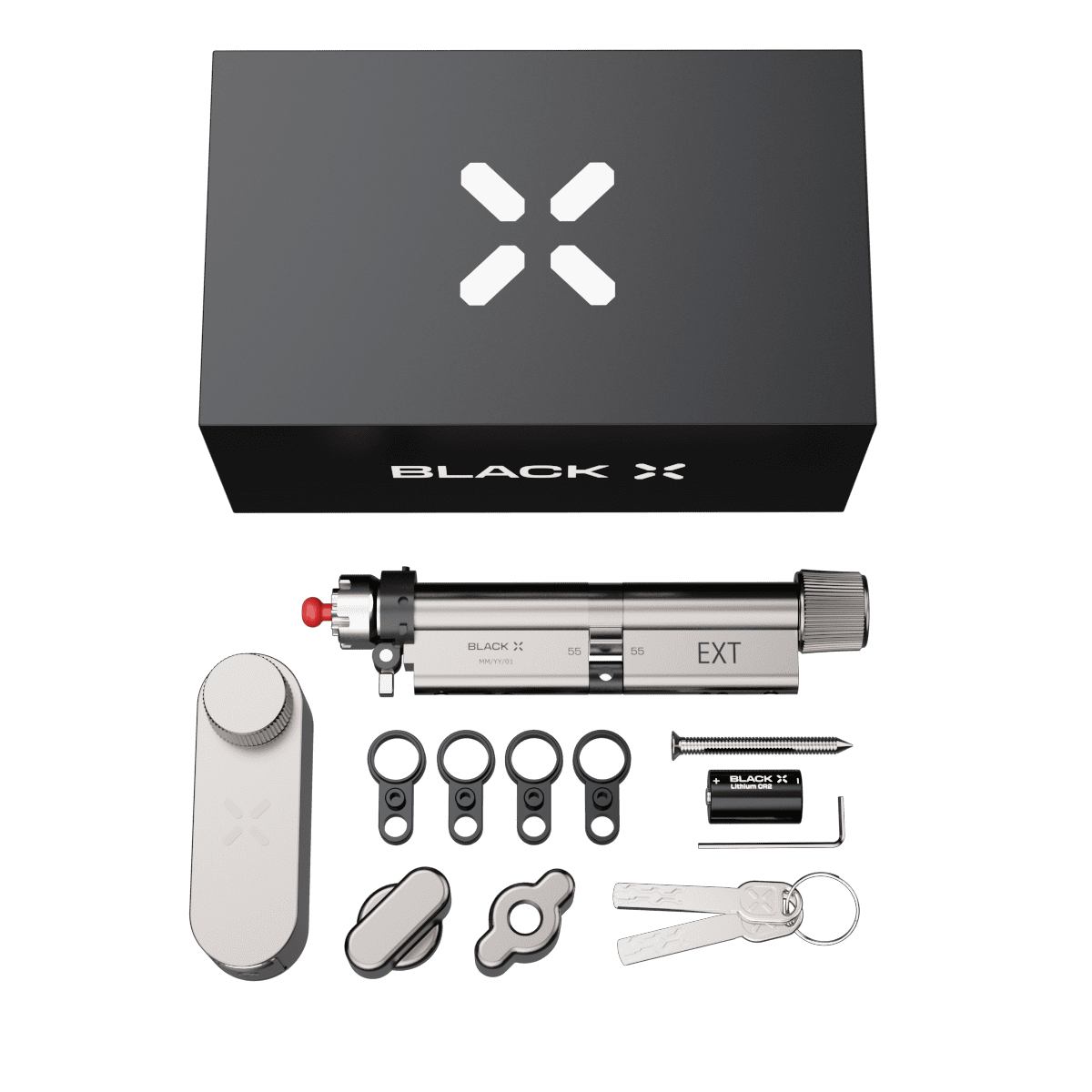 Developed as a modular alternative to standard Euro profile cylinders, this smart lock adjusts to multiple door size ranges for a precise fit. Operated using the BLACK X App on iOS or Android, it allows controlled digital access and compatibility with supported BLACK X accessories.
